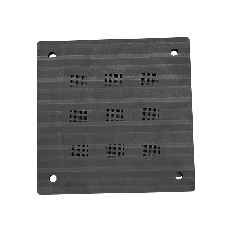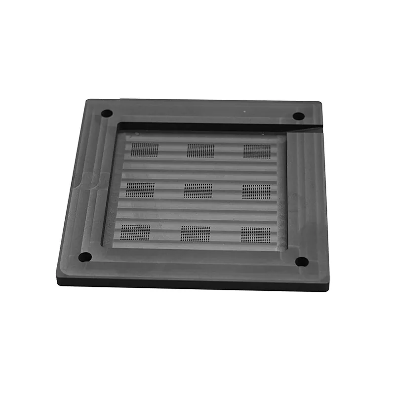 Grafitozko bolak jartzeko instalazioek hainbat ezaugarri nagusi dituzte: 1) Garbitasun handia (grafitoa ≥99,5%, ioi kutsadurarik gabe); 2) Lautasun handia (lautasuna ≤0,002 mm/m, Ra≤0,4 μm); 3) Mikra mailako bola jartzeko zehaztasuna (bolaren diametroa ± 0,025 mm, bola tartea ± 0,05 mm); 4) Tenperatura handiko erresistentzia (errendimendu egonkorra 300 °C-tan); 5) Kudeaketa termiko bikaina (eroankortasun termiko uniformea, estres termikoa murriztea).